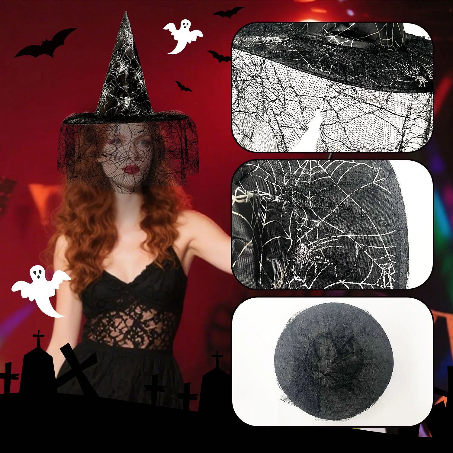 2pcs Halloween Witch & Wizard Hats – Mesh Cosplay Accessories for Women’s Party Costumes
