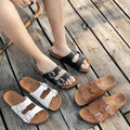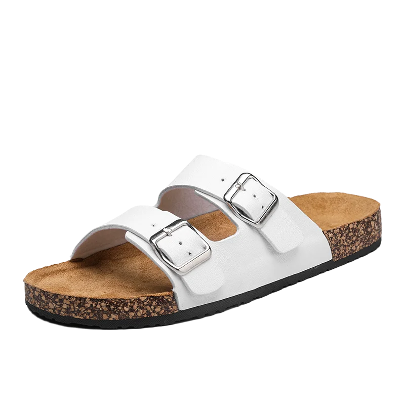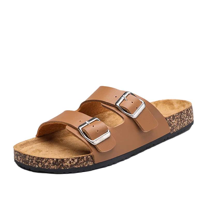 Luxury Leather Cork Sandals – Unisex Summer Slides with Classic Buckle & Ergonomic Comfort
