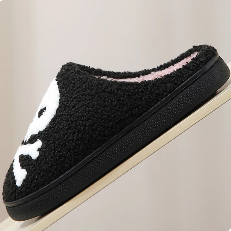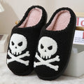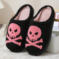 Punk Pink Skull Halloween Slippers – Warm Plush Indoor Slides for Women